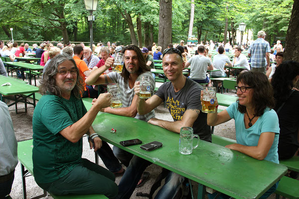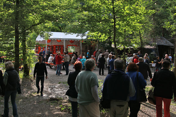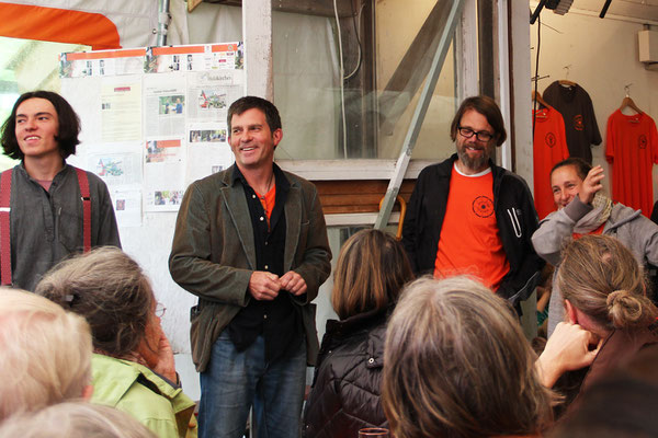 angeregt diskutiert wird oder den Besuchern die Arbeitsschritte erläutert werden.