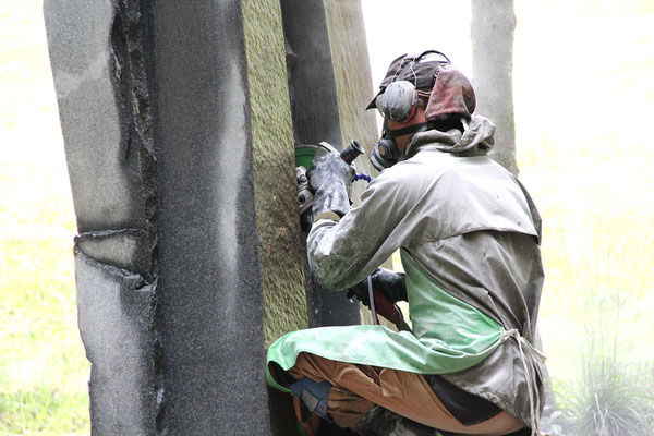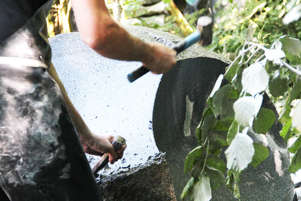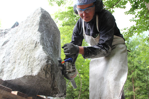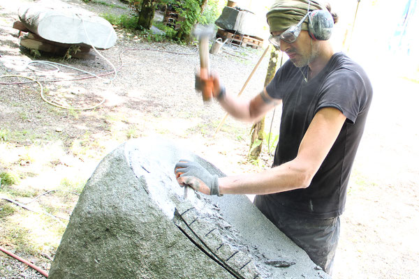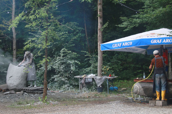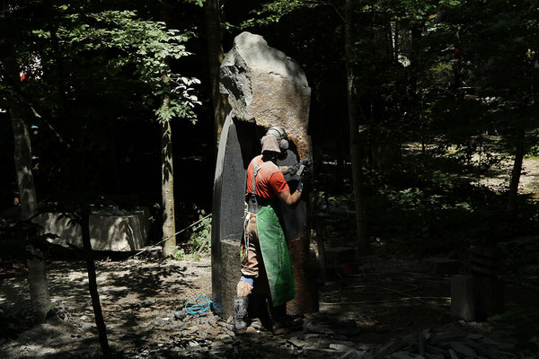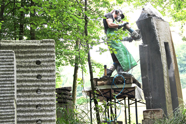 kommen. Von Montag bis Samstag zwischen 10 und 17 Uhr verwandelt sich die sonst so ruhige SKULPTUR-LICHTUNG in einen steinstaubigen Arbeitsplatz, auf dem auch immer wieder in einer Kaffepause
